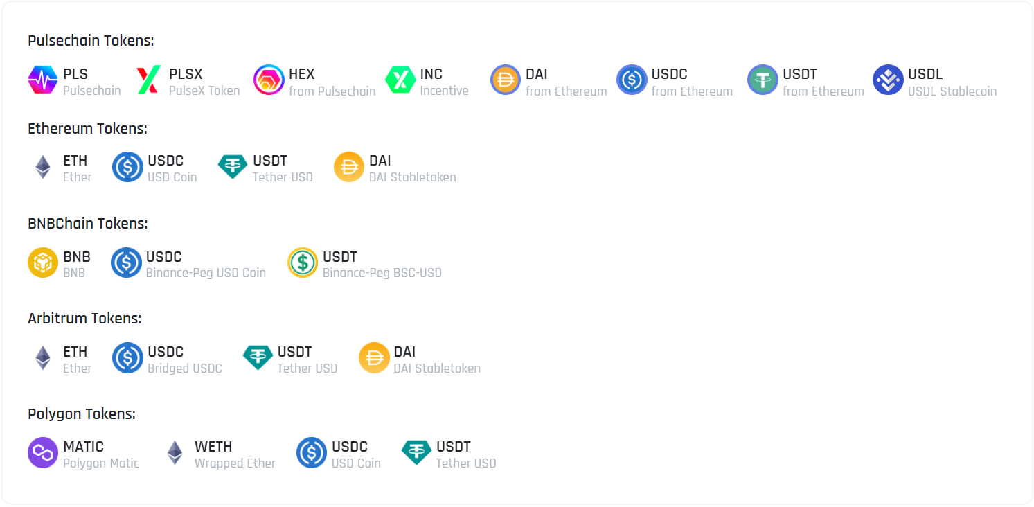 #### Eligible Tokens